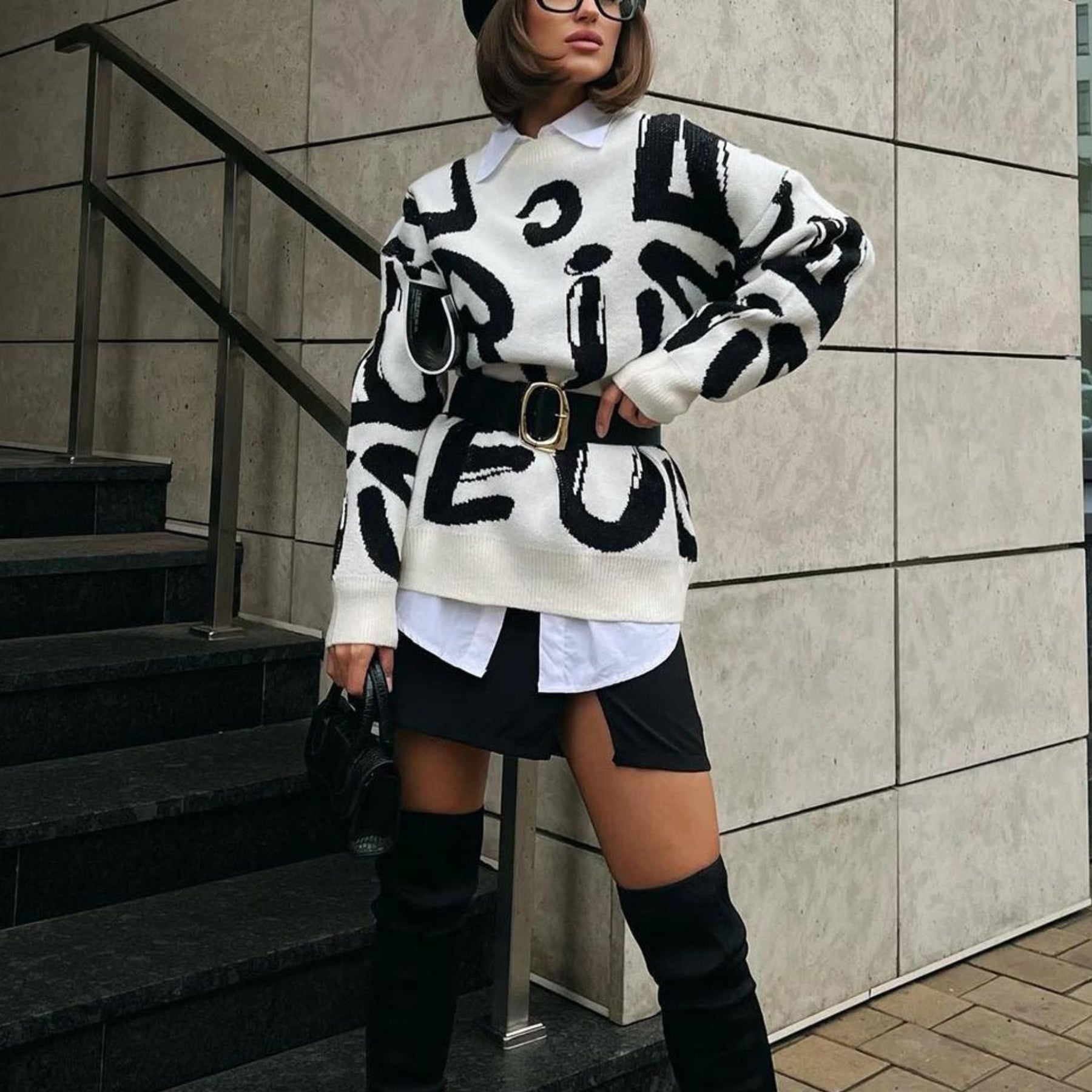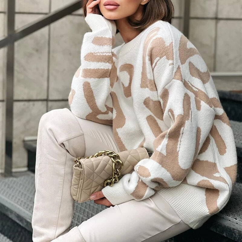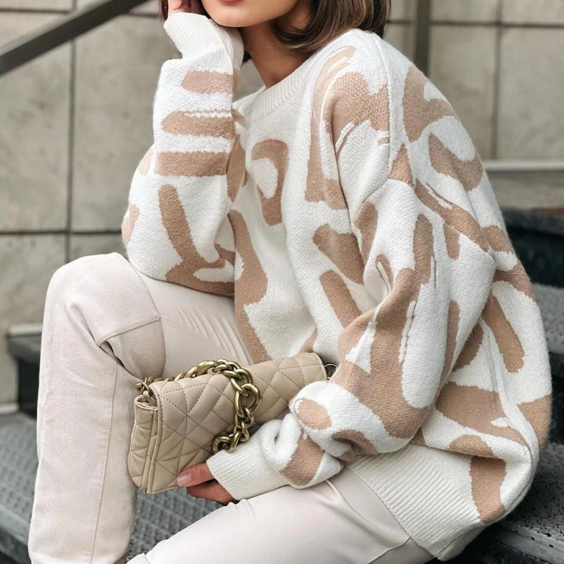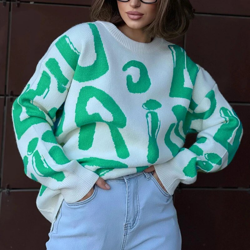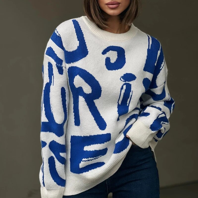 Bety - Auffälliger Grafikdruck Rundhalspullover