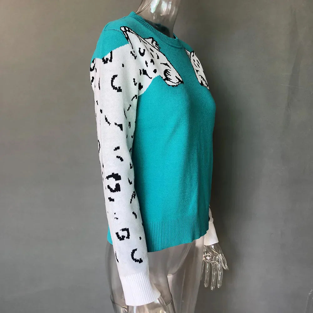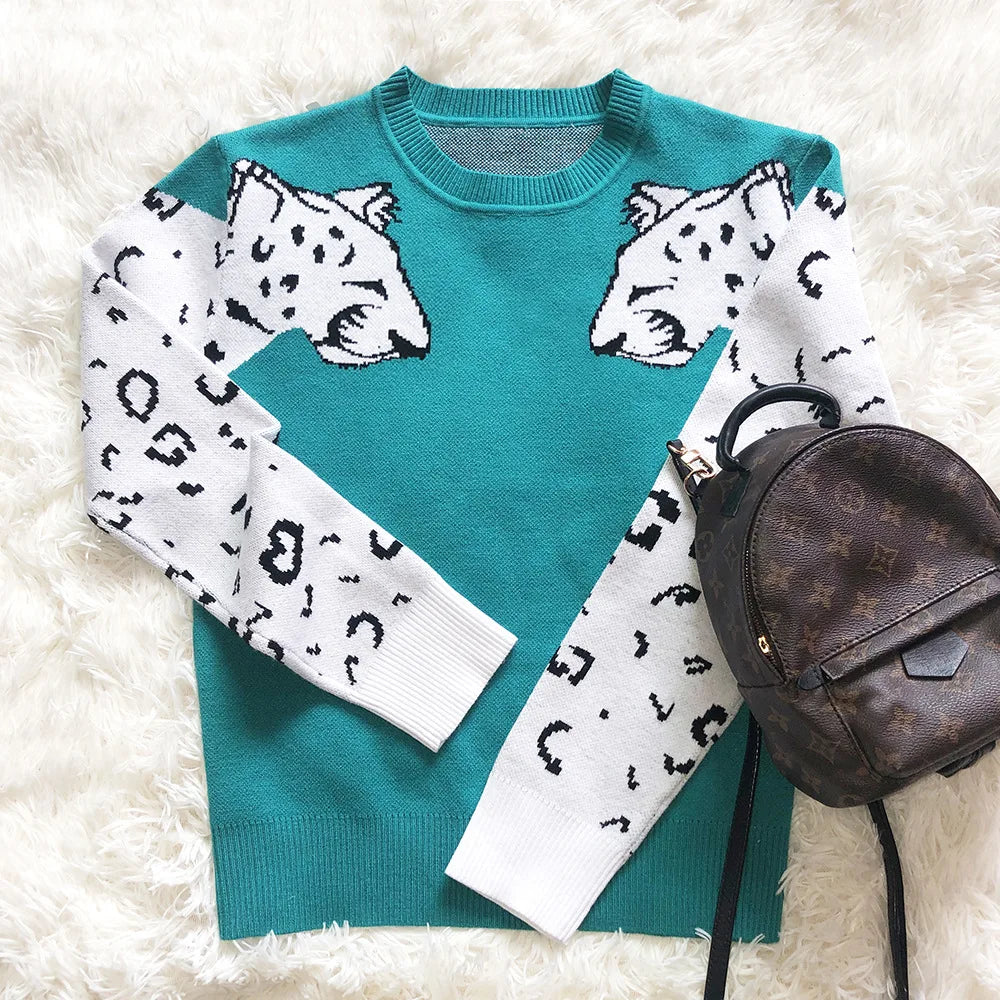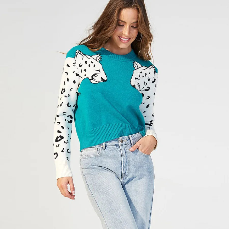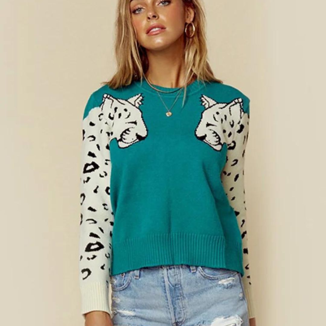 Bianca - Pullover mit Leopardenmuster an den Ärmeln in Kontrastfarben
