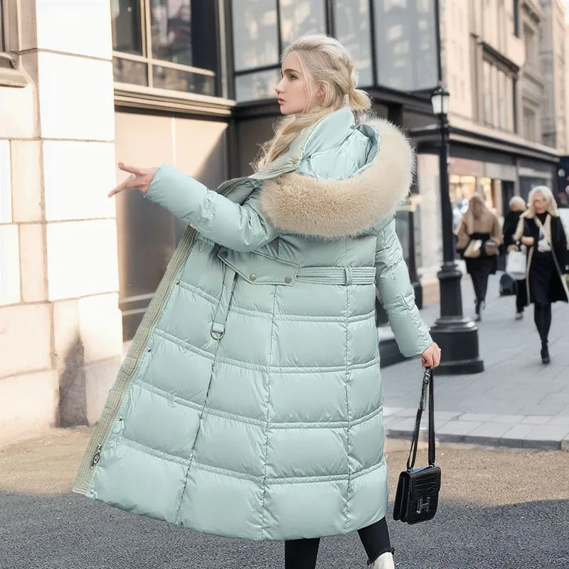 Bonnie - Langer Wintermantel mit Pelzkapuze und Gürtel für Frauen