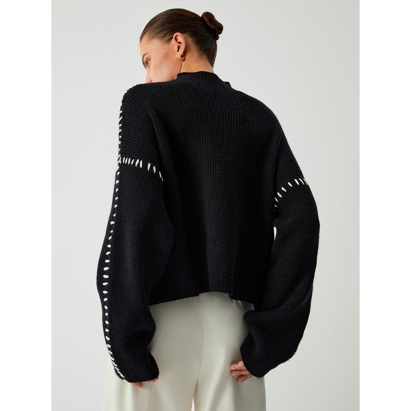 Entdecken Sie den Helga - Black Knitted Sweater, ein stilvolles Essential für jeden Kleiderschrank. Mit seinem minimalistischen Design und dem tiefschwarzen Farbton strahlt dieser Pullover Eleganz und Vielseitigkeit aus. Der Helga ist sowohl für legere als auch für elegante Anlässe geeignet und bietet einen bequemen Sitz und einen klassischen Look, der nie aus der Mode kommt.