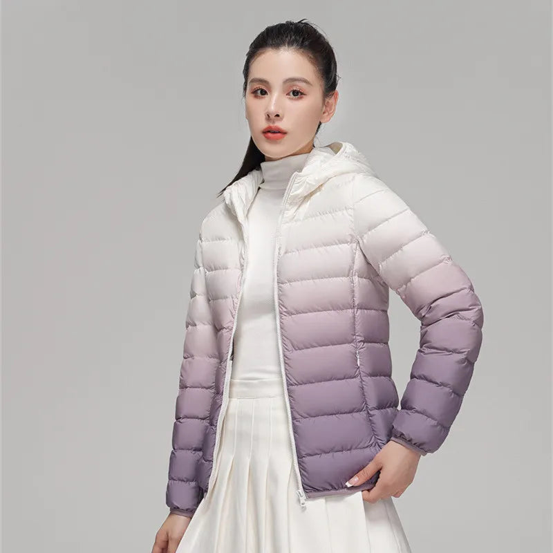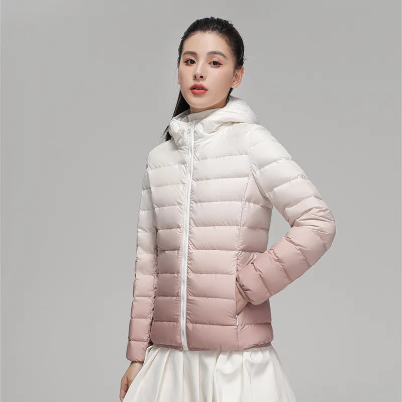 Vera - Leichte Daunenjacke mit Kapuze in Farbverlauf