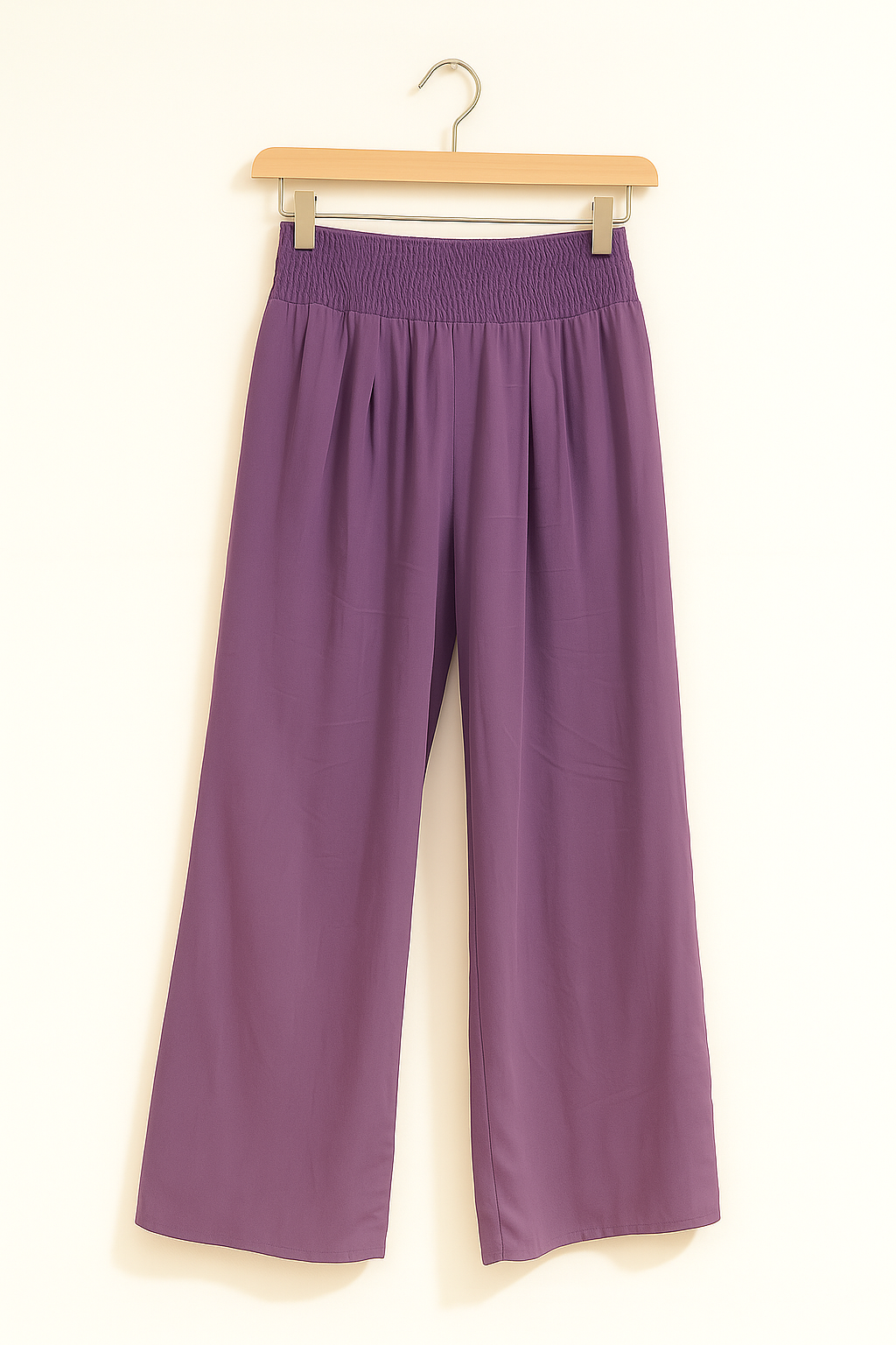 Diese luftige Hose ist wie gemacht für warme Tage, an denen Komfort und Stil gleichermaßen zählen. Der elastische High Waist Bund sorgt für eine flexible Passform, während das weite Bein eine elegante, fließende Silhouette zaubert. Ob am Strand, beim Stadtbummel oder im Urlaub, dieses Modell lässt sich mühelos kombinieren und begleitet dich durch jeden sommerlichen Anlass.