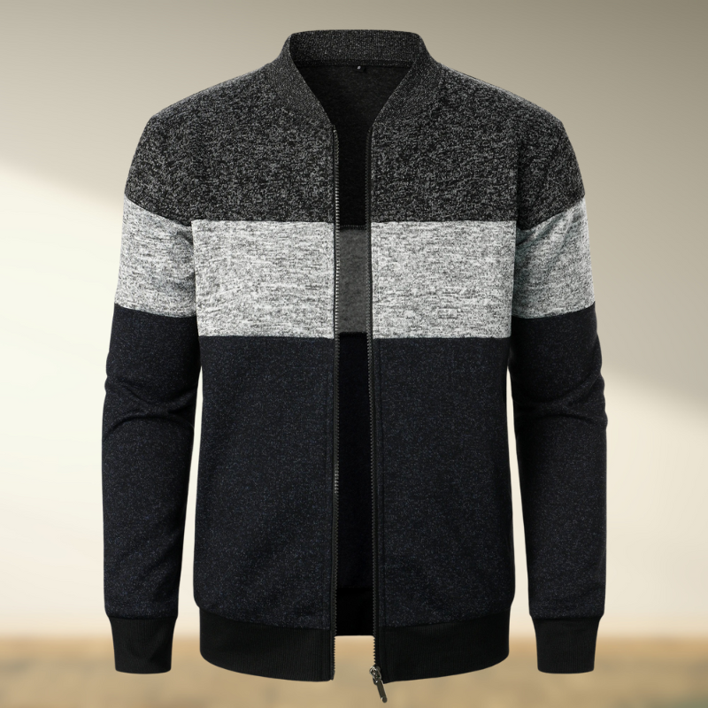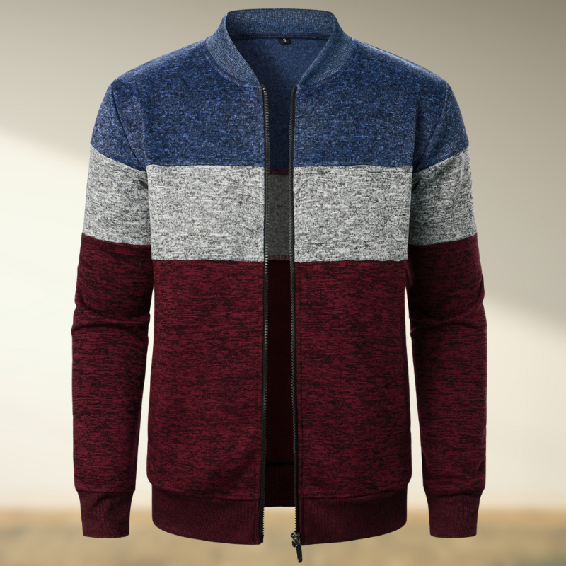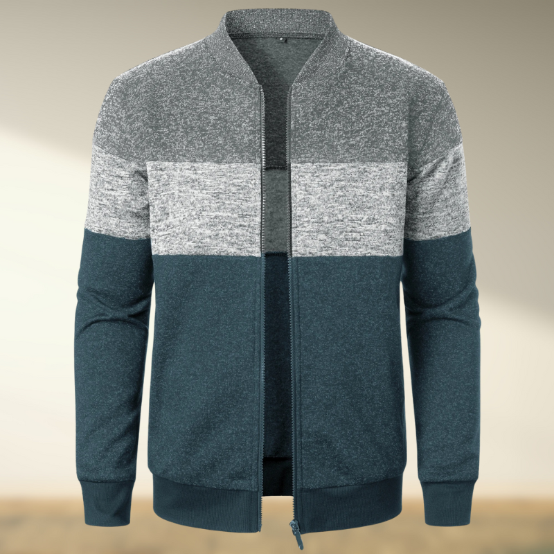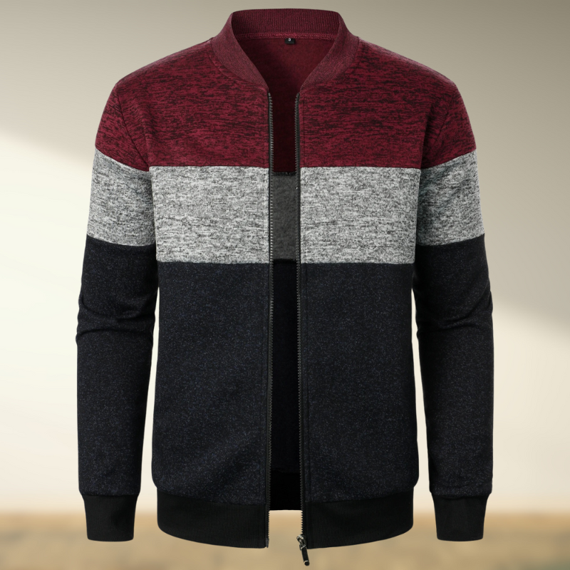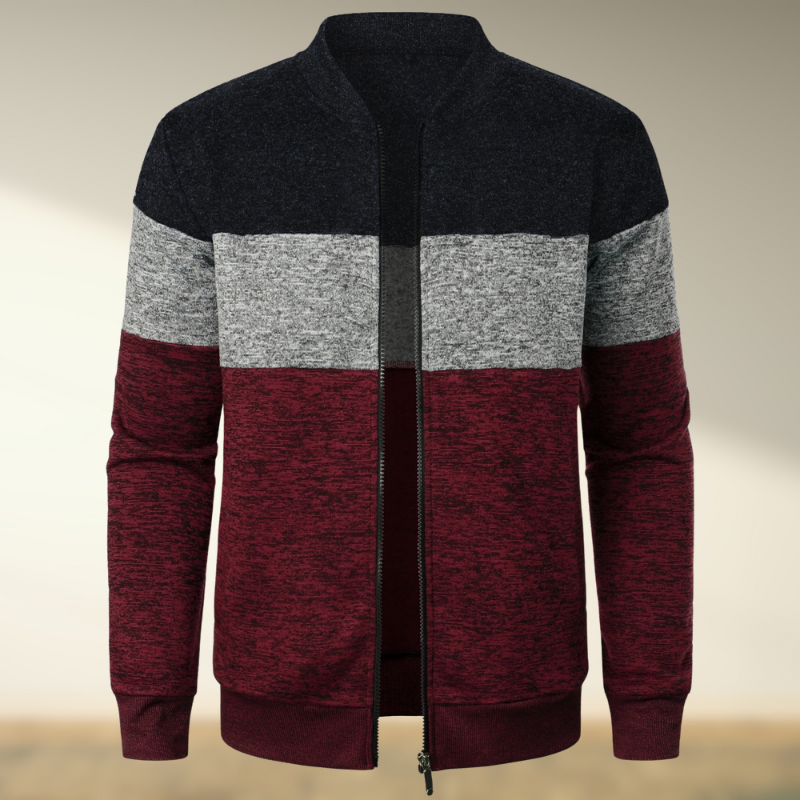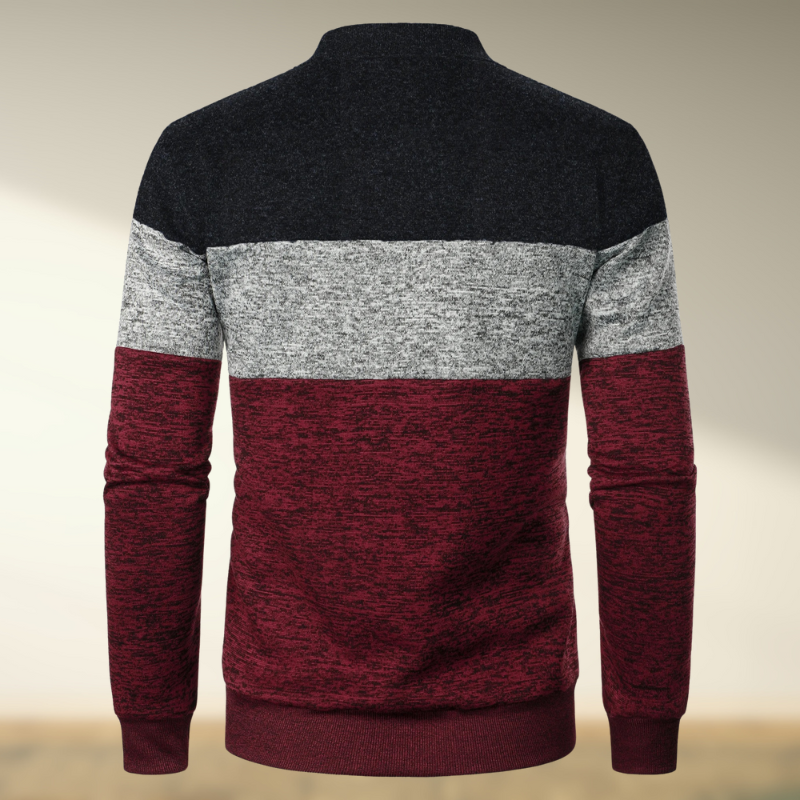 Yemi – Stehkragen Streifen Reißverschluss Pullover