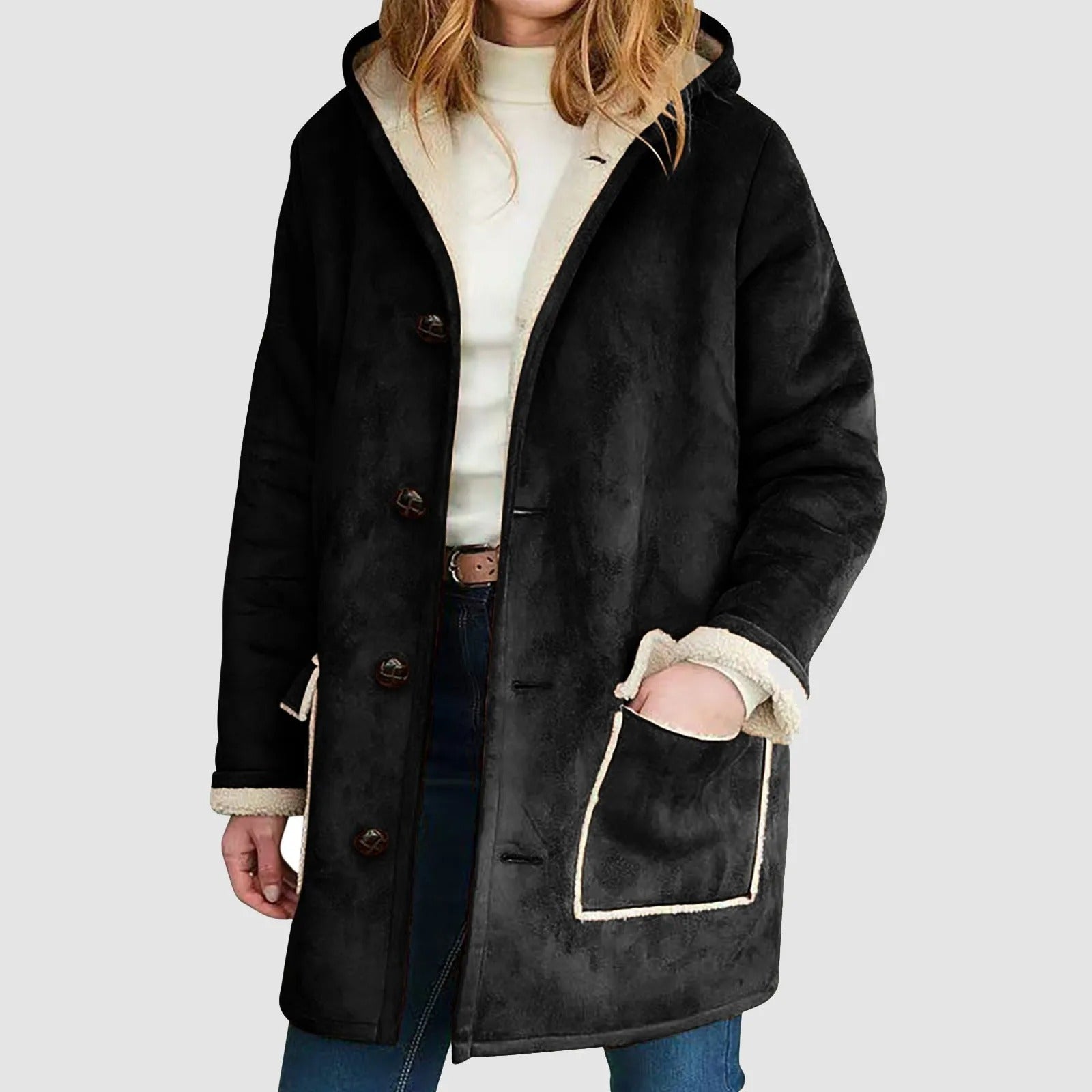 Kalte Tage werden besser: Mit dem Fleece-Kapuzenmantel von Yulia sind Sie bestens gerüstet!