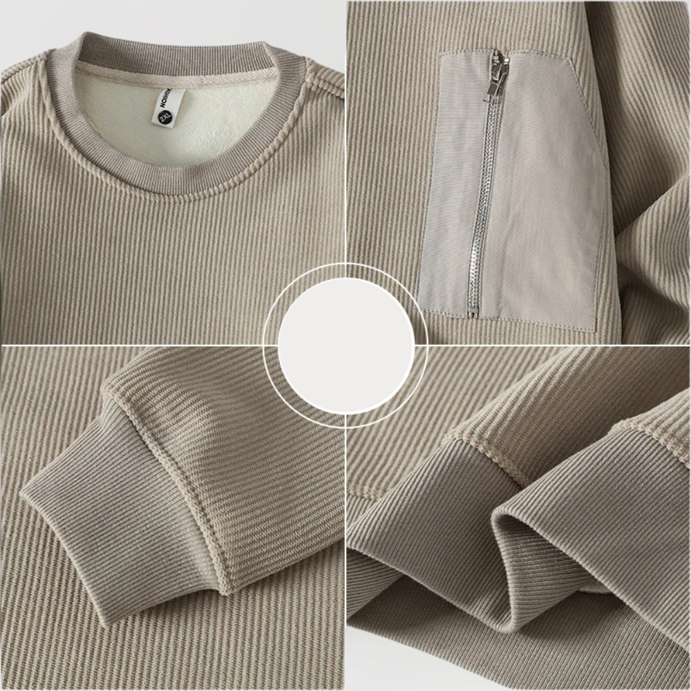 Praktische Reißverschlusstasche: Mit der modernen Reißverschlusstasche des Pullovers bleiben Sie organisiert. Sie eignet sich perfekt zum sicheren Verstauen kleinerer Gegenstände wie Schlüssel, Karten oder Bargeld und vereint Funktionalität mit Stil.
