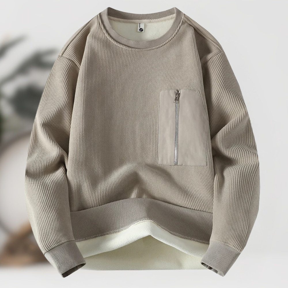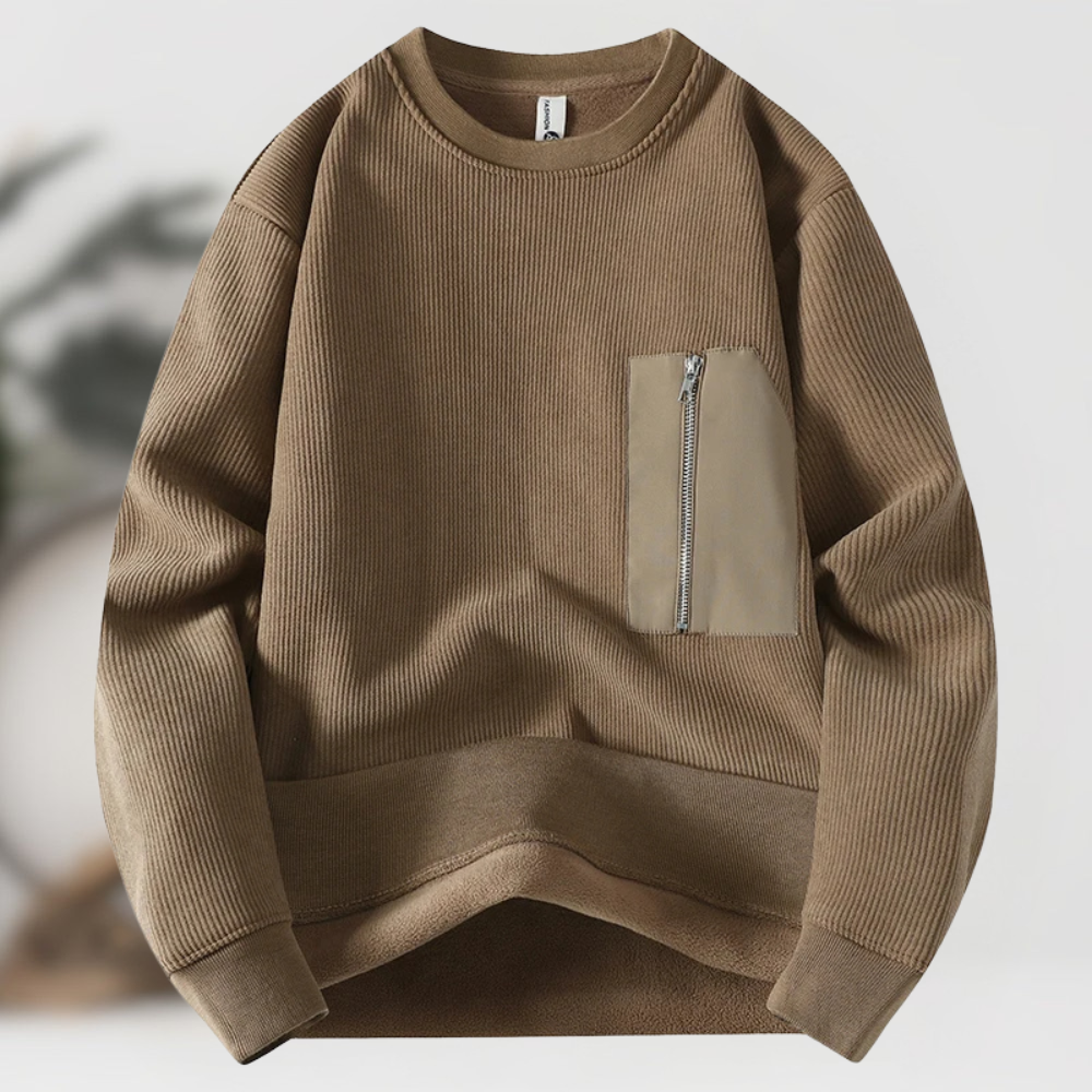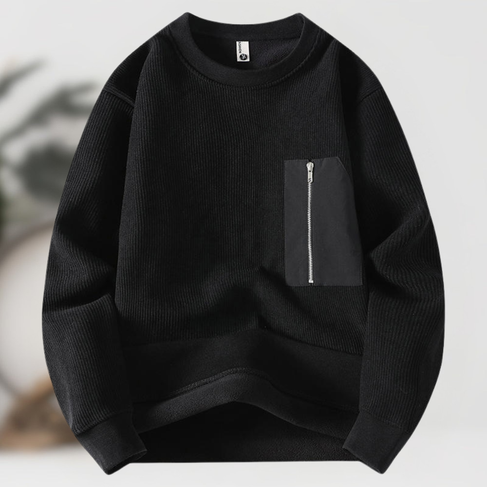 Veredeln Sie Ihren Freizeitlook mit dem Zarch-Strickpullover mit Reißverschlusstasche!
